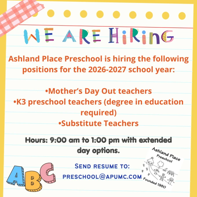 submit resumes to APUMC Preschool